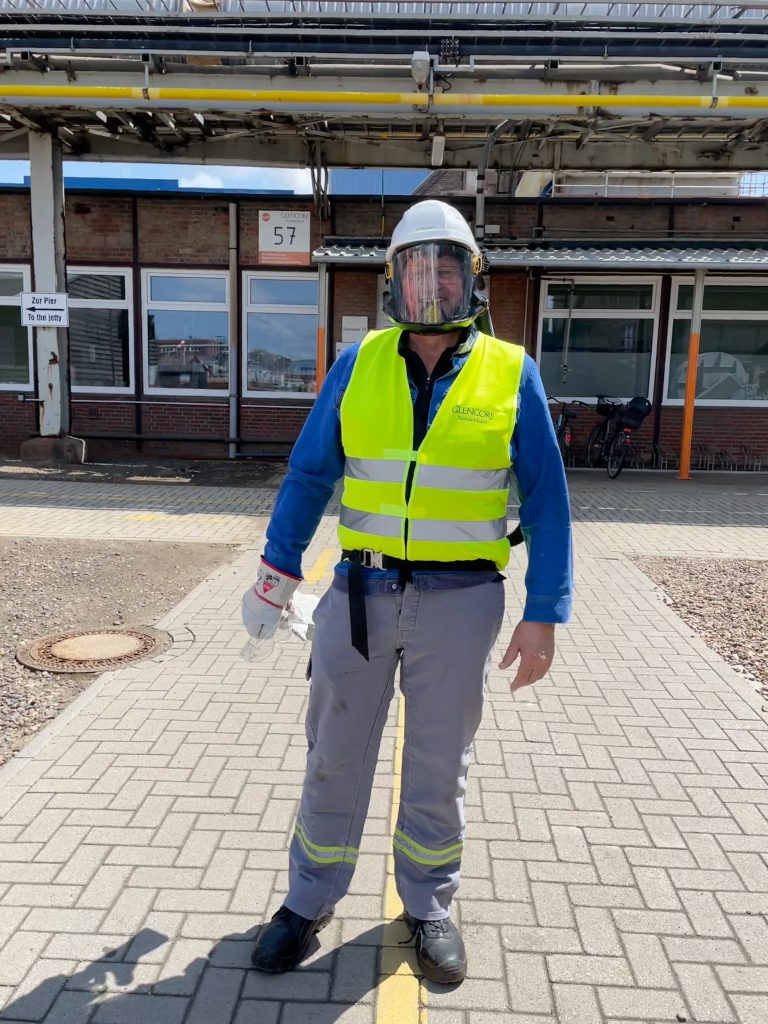 Anlagenbegehung in kompletter PSA-Ausstattung und Atemschutzgerät während einer Betreiberschulung