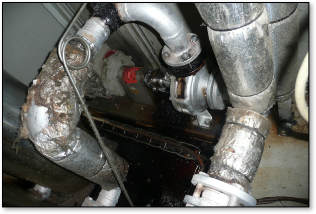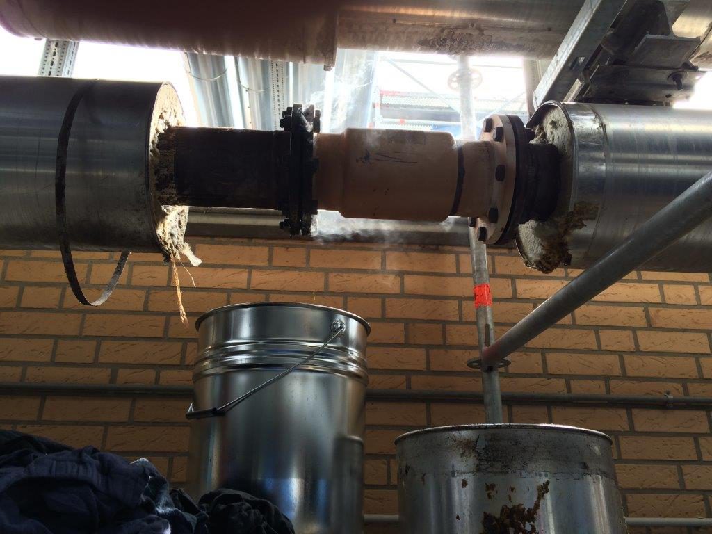 Beispiel einer Leckage an einer Flanschdichtung eines einisolierten Kompensators